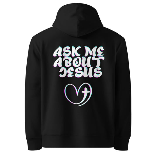 'Ask Me About Jesus' Black Unisex Premium Eco Hoodie